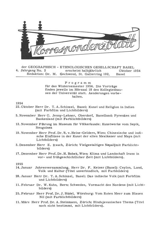 Korrespondenzblatt / Geographisch-Ethnologische Gesellschaft Basel