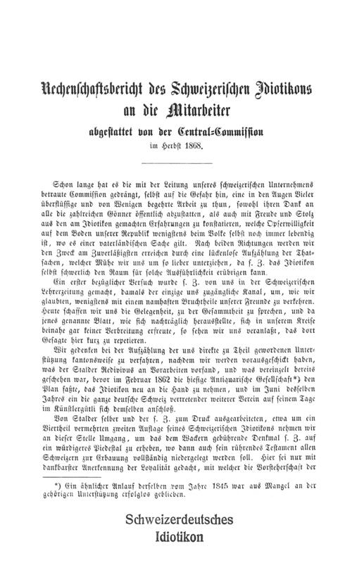 Rechenschaftsbericht des Schweizerischen Idiotikons an die Mitarbeiter