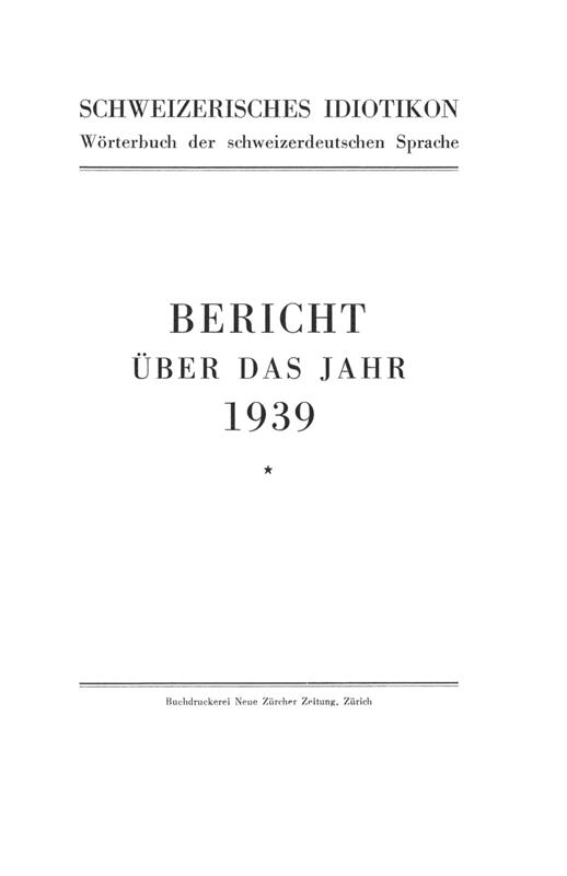Bericht über das Jahr / Schweizerdeutsches Wörterbuch : Schweizerisches Idiotikon