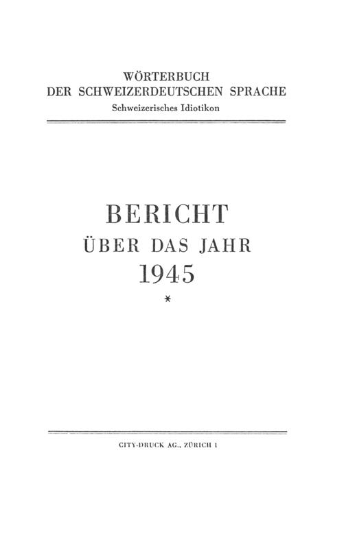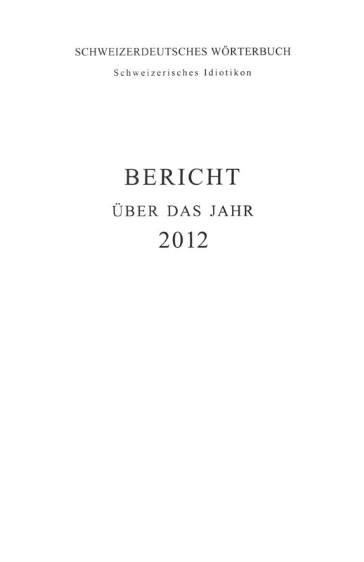 Bericht über das Jahr / Schweizerisches Idiotikon